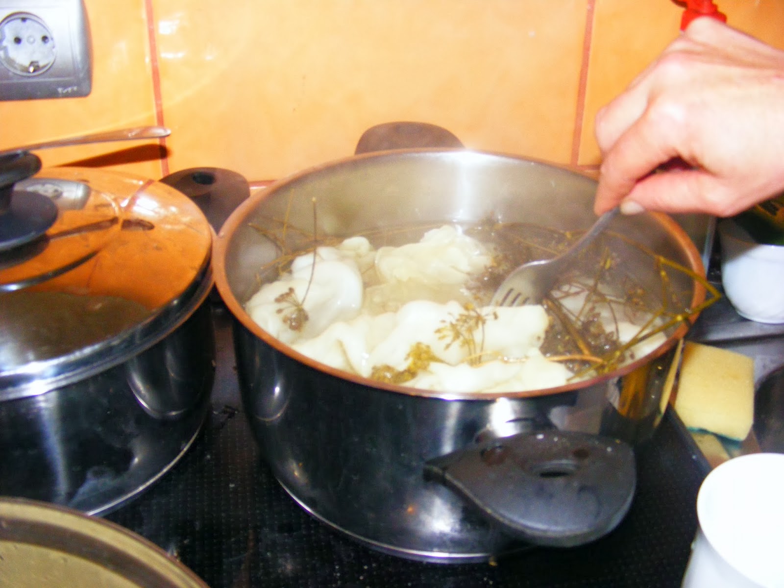 Varza proaspata se opareste in apa cu sare, putin otet, marar uscat, cimbru